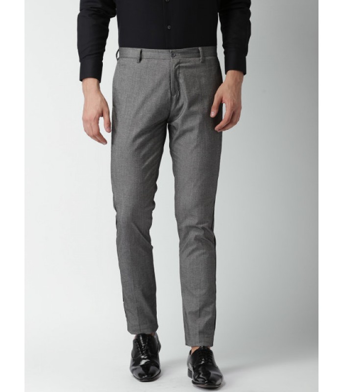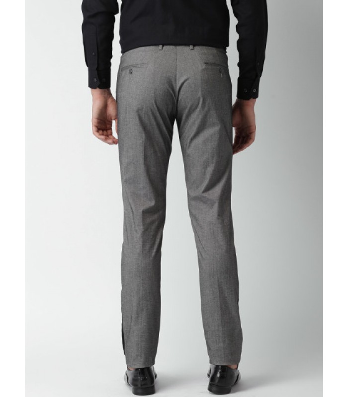 Grey melange solid mid-rise formal trousers, has a button closure, 4 pockets
