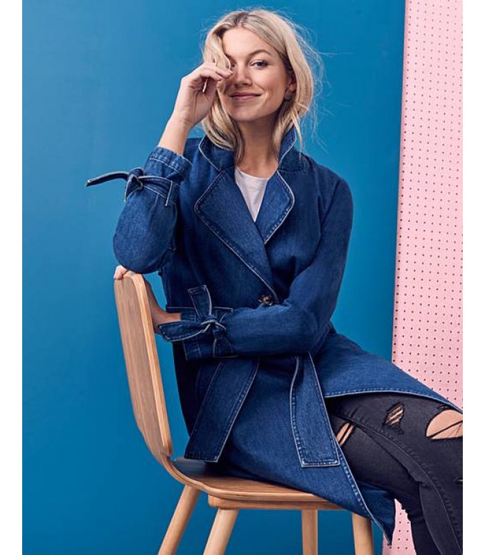 Our B'mart denim trench will give you the perfect autumnal chic vibes this season. With a button-and-tie waist fastening, pair with jeans and an oversized roll-neck jumper underneath.