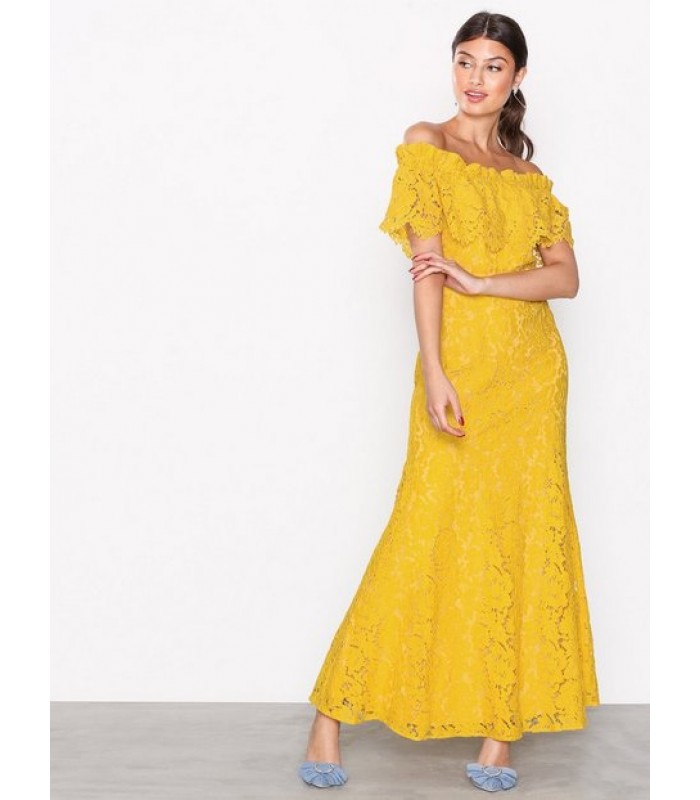 Detail:Products Code:Dress -BF5128Brand B'martLace dress from By B'mart Long, off-shoulder design with defined waist. Elastic and frilling around shou..