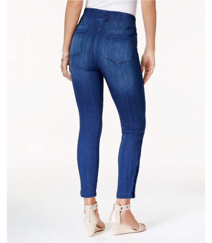 Button detailing at the ankles ups the vibe of these blue-wash jeggings.