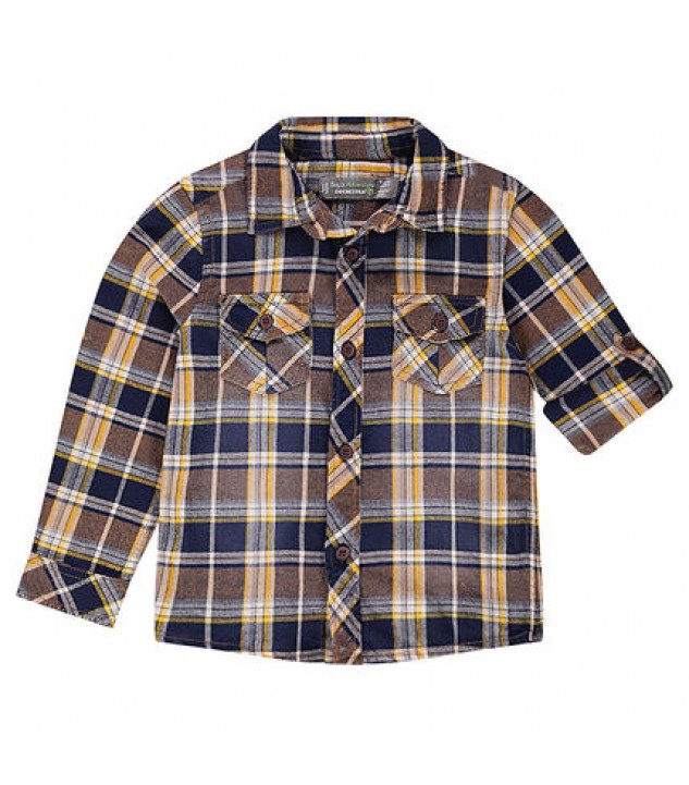 Checked long sleeve shirt. Shirt collar with a buttoned opening on the front. 2 flap pockets on the chest. Rollable sleeves. Capuchin paw cuffs 3 buttons.